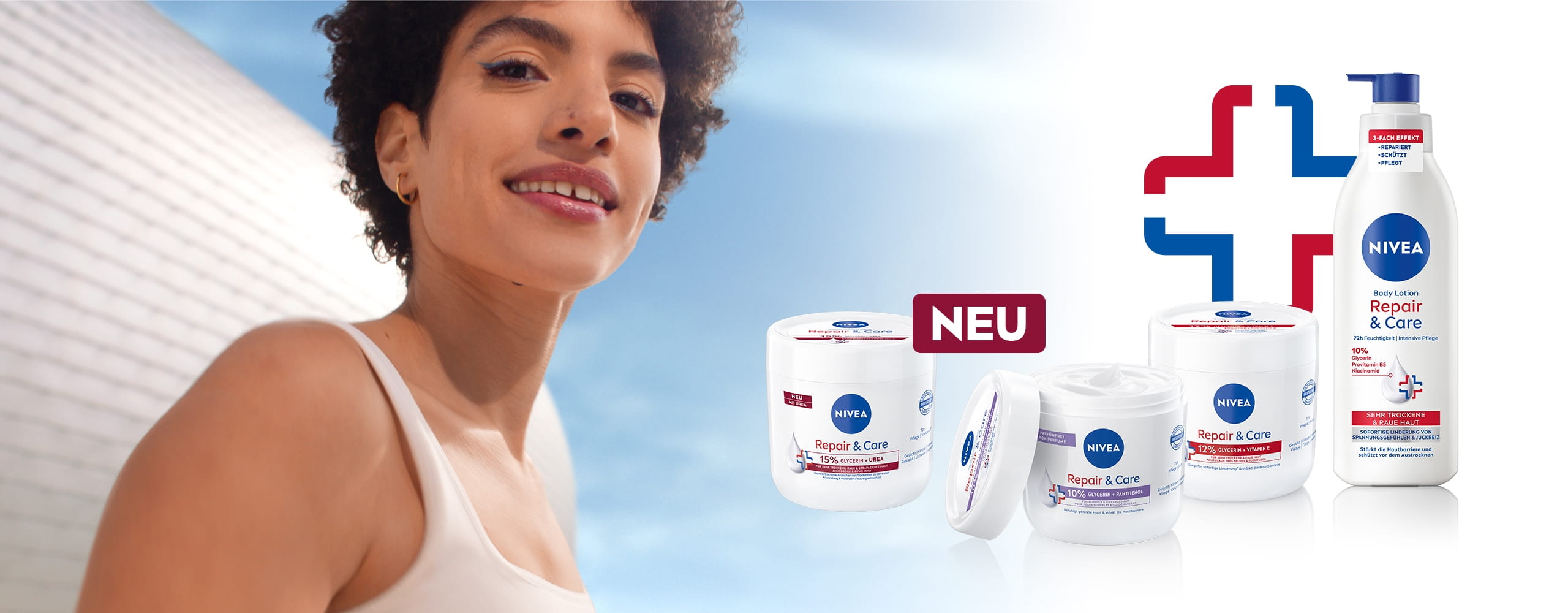 Trockene, empfindliche oder gereizte Haut? Entdecke die gesamte Repair & Care Produktlinie! Jetzt neu: NIVEA Repair & Care mit UREA. Die Formeln von NIVEA Repair & Care reparieren irritierte Haut sofort und stärken zusätzlich die Hautbarriere. Von Gesicht, über Körper und Hände.