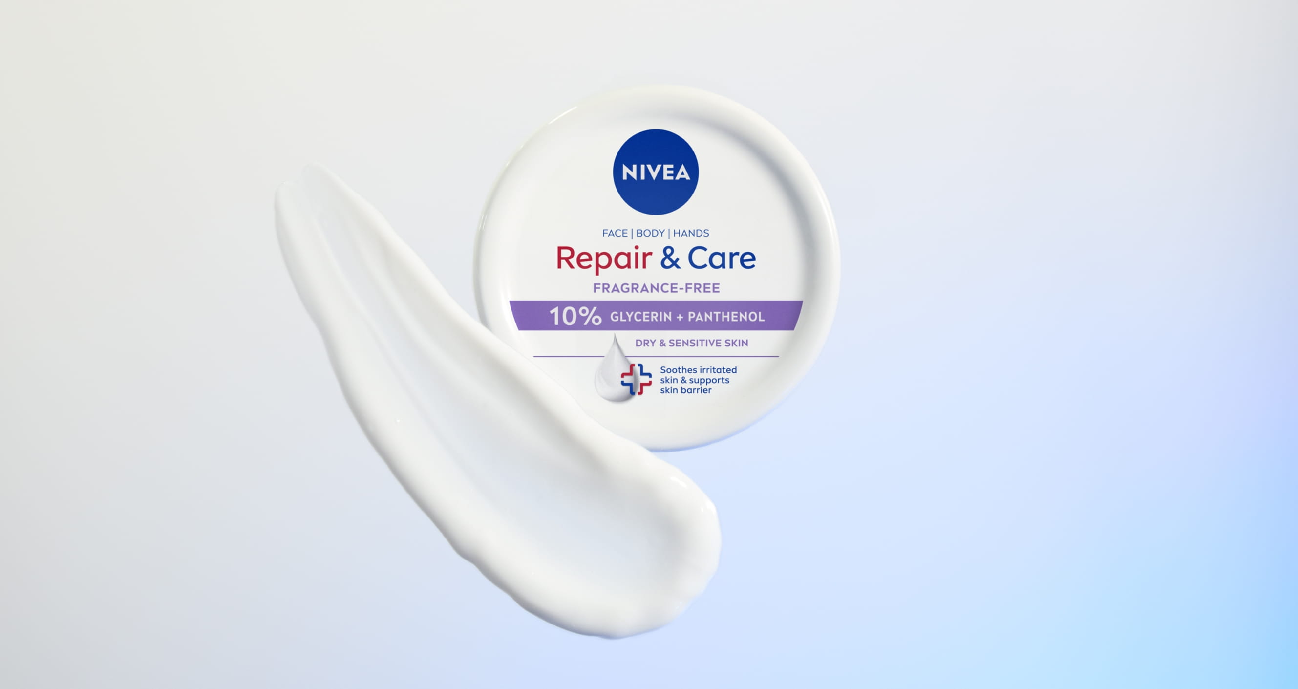 Die NIVEA Repair & Care Parfümfrei Creme für trockene Haut