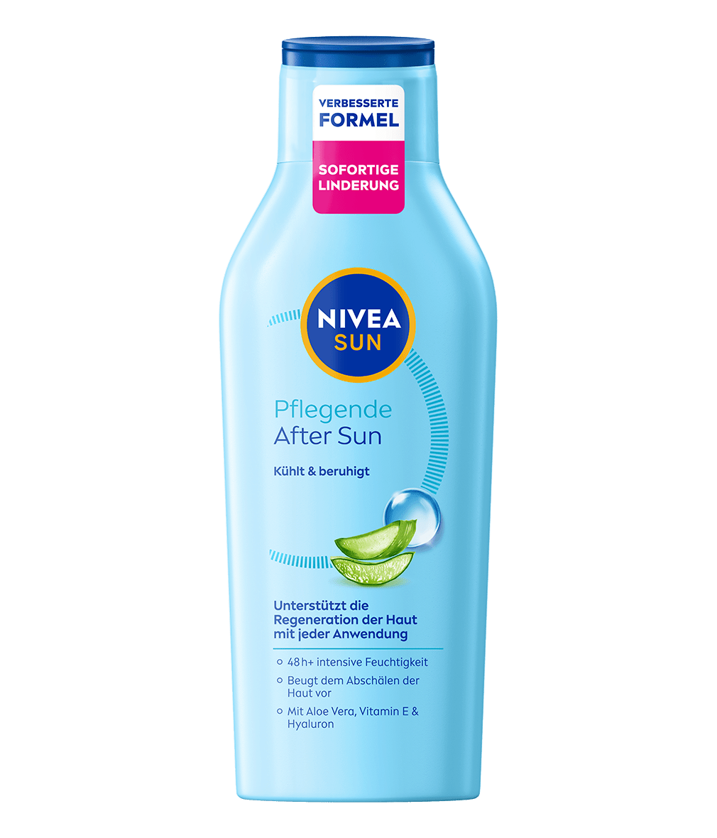 Wir alle kennen das: Trotz zuverlässigem Schutz stellen sich nach dem Sonnenbaden Rötungen und Spannungsgefühle ein. In diesem Fall hilft dir eine pflegende After Sun Lotion dabei, deine Haut zu beruhigen. Die After Sun Produkte von NIVEA sorgen für sofortige Entspannung und spenden mit Bio-Aloe Vera nachhaltig Feuchtigkeit.