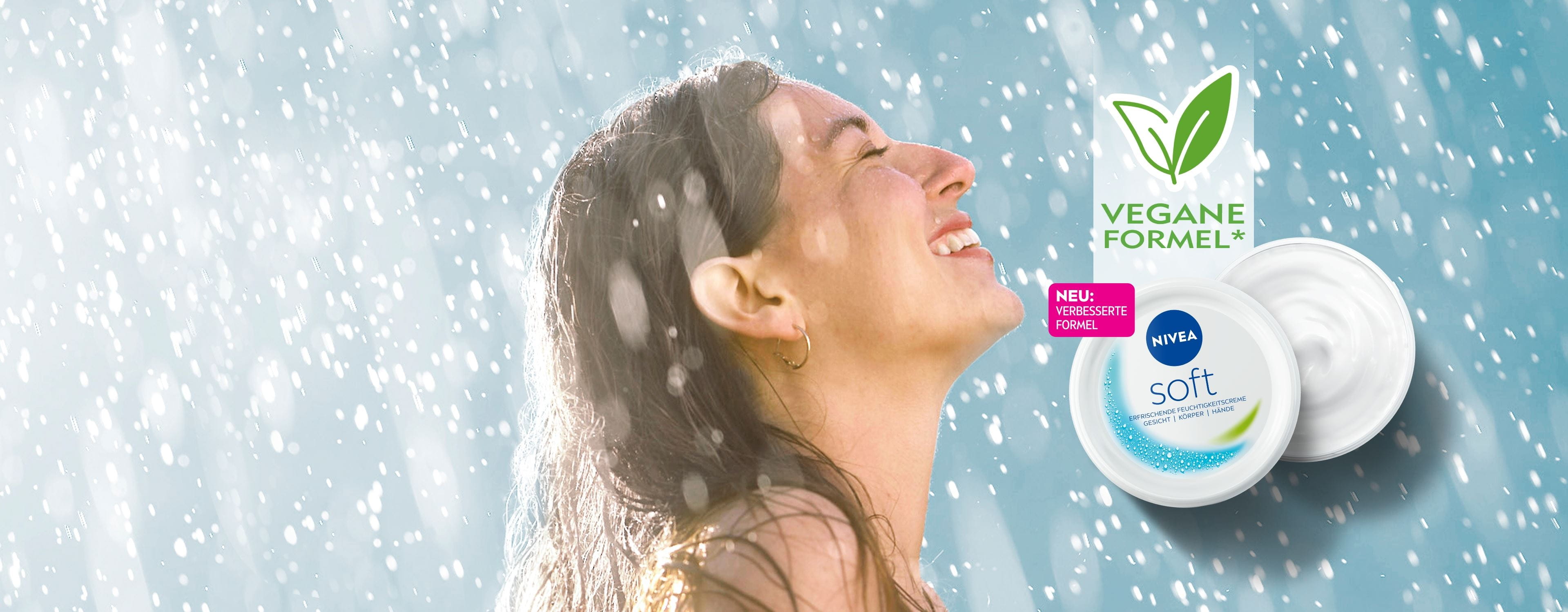 NIVEA Soft fühlt sich frisch an wie der Morgentau, belebend wie ein Wasserfall und sanft wie ein Sommerregen. Die verbesserte Formel spendet deiner Haut jetzt 48h erfrischende Feuchtigkeit und ist vegan*.