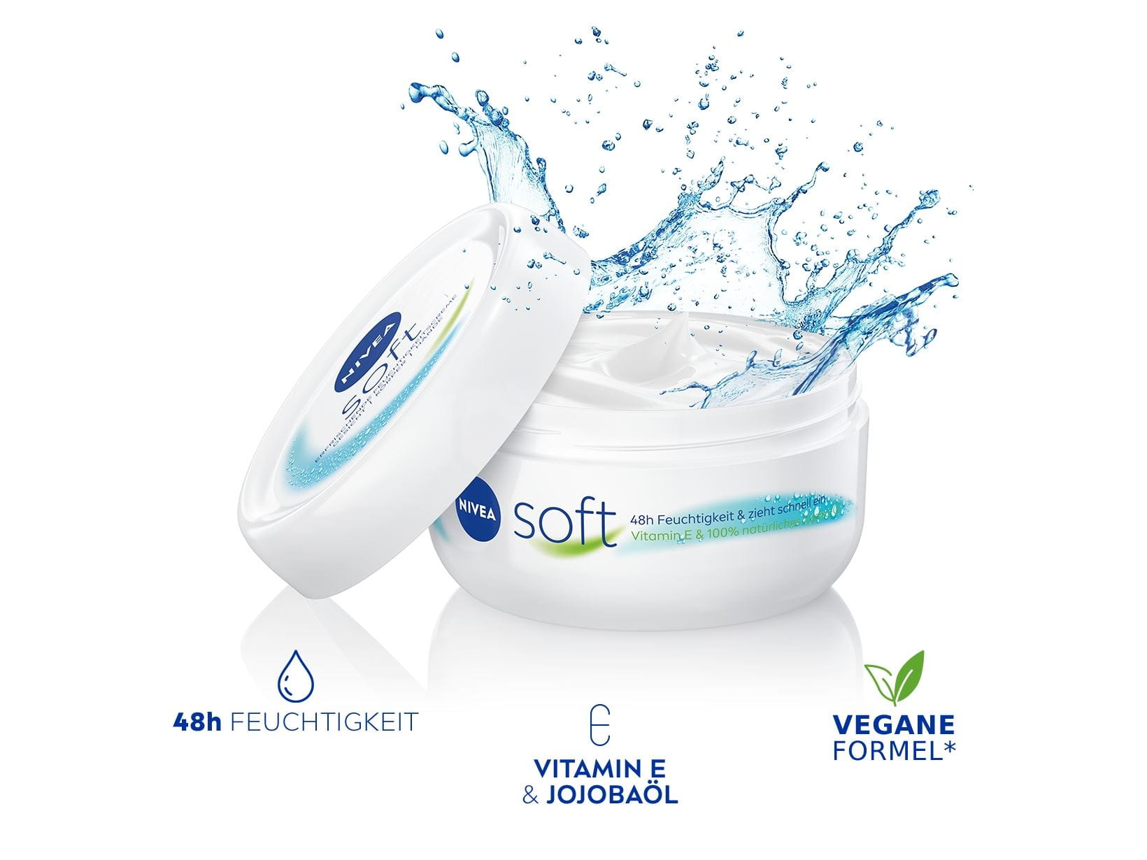 NIVEA Soft spendet deiner Haut jetzt 48h intensive Feuchtigkeit. Die leichte Formel mit Vitamin E und wertvollem Jojobaöl zieht schnell ein und erfrischt die Haut sofort. Das macht sie zur perfekten Pflegecreme für den täglichen Gebrauch – wer sie einmal probiert hat, wird sie einfach lieben!