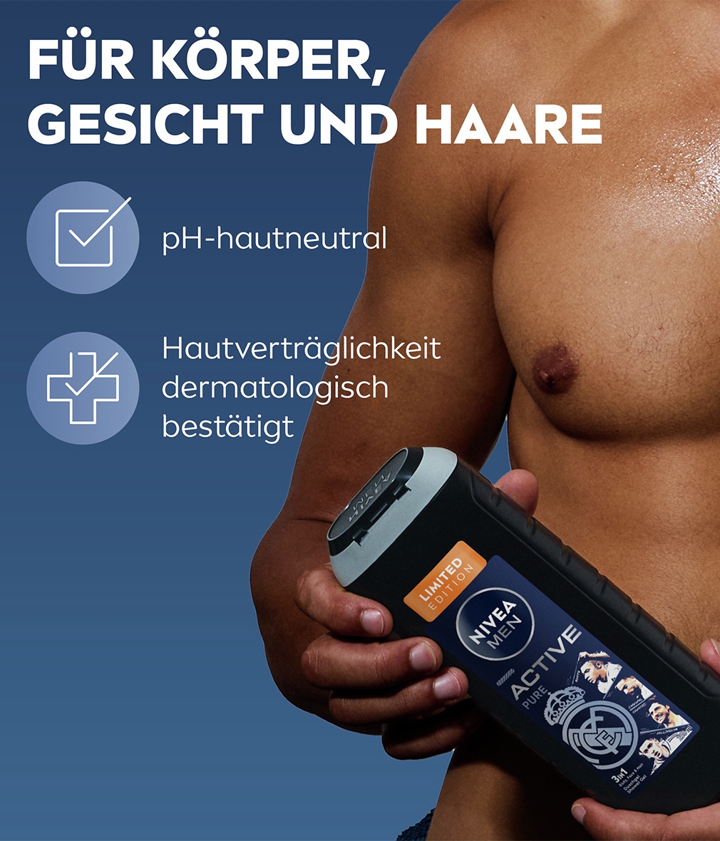 Du möchtest ein tiefenreines Hautgefühl mit maskulinem Duft? Diese Formel wurde entwickelt, um Verunreinigungen von der Haut zu entfernen. Hergestellt mit natürlich gewonnener mikrofeiner Tonerde, reinigt sie gründlich und sorgt für ein großartiges Hautgefühl und einen angenehmen Duft. Für ein gepflegtes Hautgefühl und gesund aussehende Haut. Die Formel ist pH-hautneutral und die Hautverträglichkeit ist dermatologisch bestätigt. Die Formel ist 99% biologisch abbaubar¹ und frei von Mikroplastik. Die Flasche ist aus 97% recyceltem Plastik².