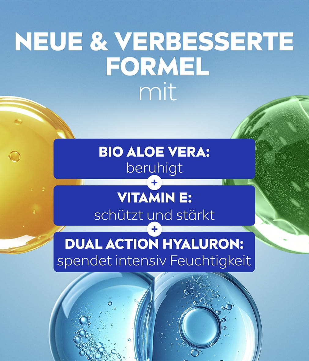 - Parfümfreie, besonders hautverträgliche Formel mit Bio-Aloe Vera, Vitamin E und Dual-Hyaluron – abgestimmt auf die Bedürfnisse von Gesicht und Körper