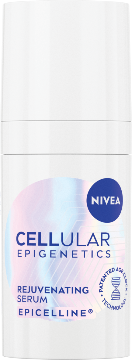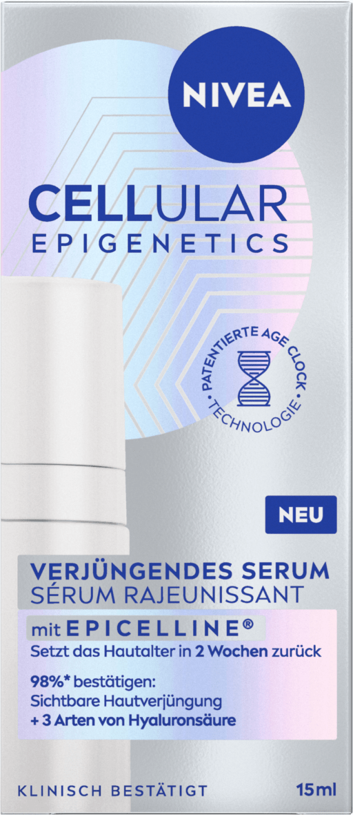 Cellular Epigenetics Verjüngendes Serum, mit seiner patentierten Age Clock Technologie® und dem Wirkstoff Epicelline®, Setzt das Hautalter in 2 Wochen zurück.