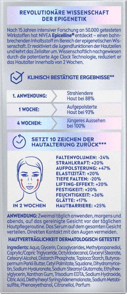 - mit EPICELLINE® Setzt das Hautalter in 2 Wochen zurück