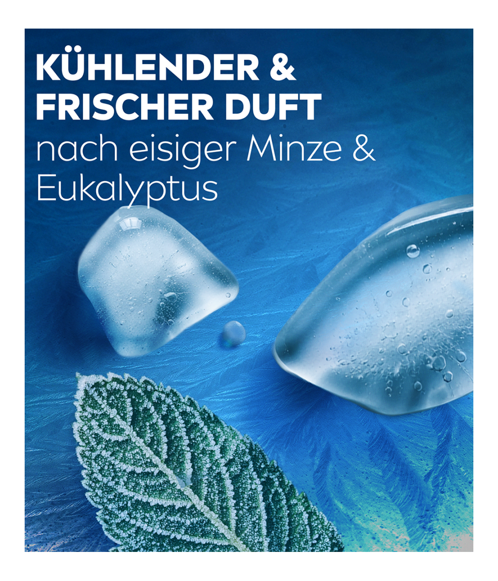 Diese Formel mit ihrem sofort kühlenden Menthol-Kick erfrischt deine Haut, während der lebendige Duft von eisiger Minze und Eukalyptus deine Sinne belebt.
