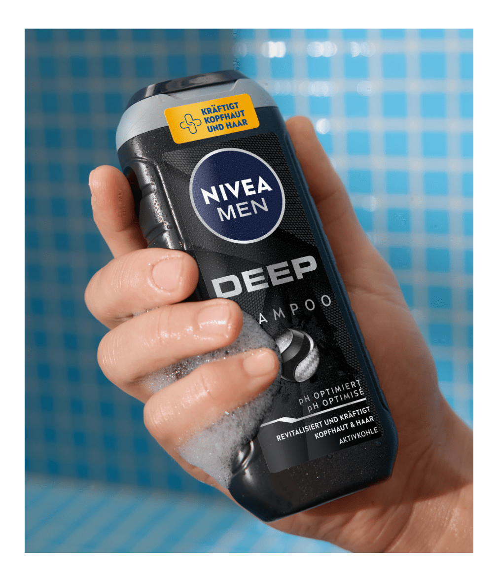 Das pH-optimierte NIVEA MEN Deep Shampoo mit Aktivkohle revitalisiert die Kopfhaut & stärkt das Haar. Das Männer Shampoo gegen fettige Haare & Kopfhaut für ein langanhaltendes Frischegefühl.