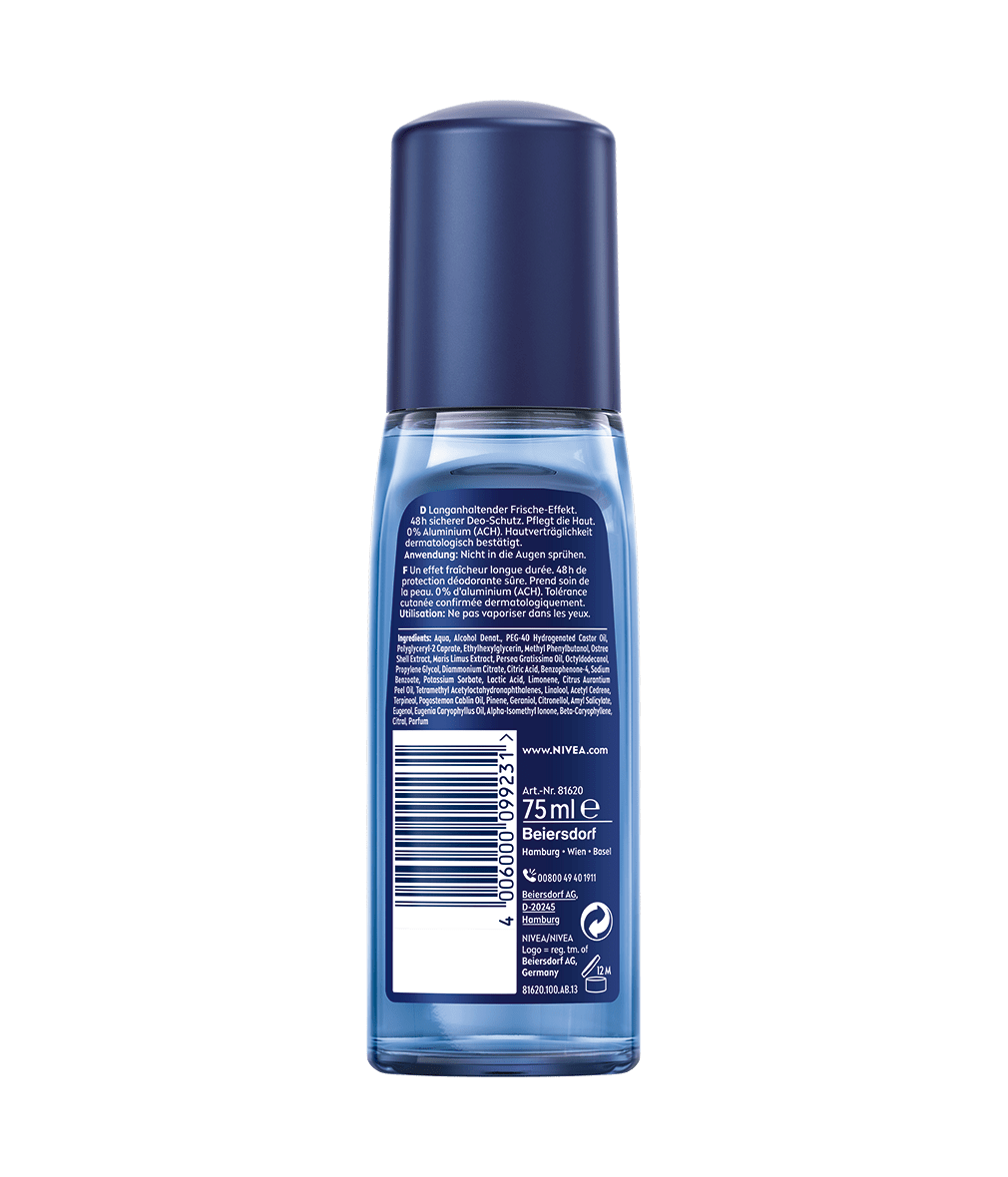Die einzigartige INFINIFRESH Formel ohne Aluminium bietet langanhaltende Frische für die Haut und 48h sicheren Deo-Schutz. Für ein spürbar frisches Hautgefühl: NIVEA MEN Fresh Active Deo Zerstäuber.