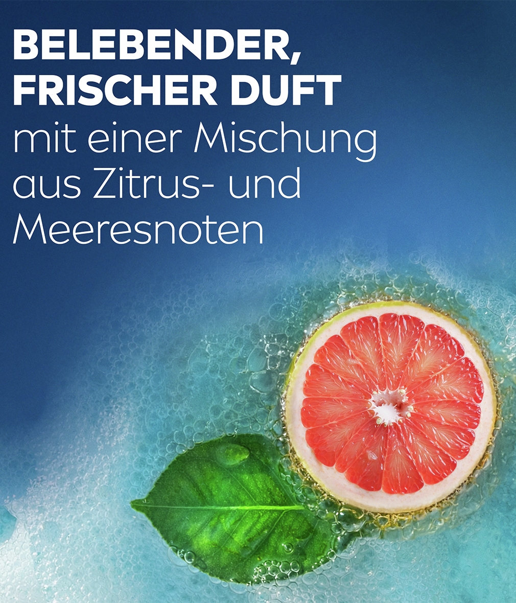 Diese erfrischende Formel mit natürlich gewonnenen Ozeanmineralien sorgt für ein großartiges Duscherlebnis – und ihr belebender Frischeduft hält lange an.