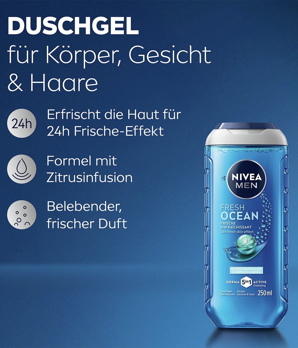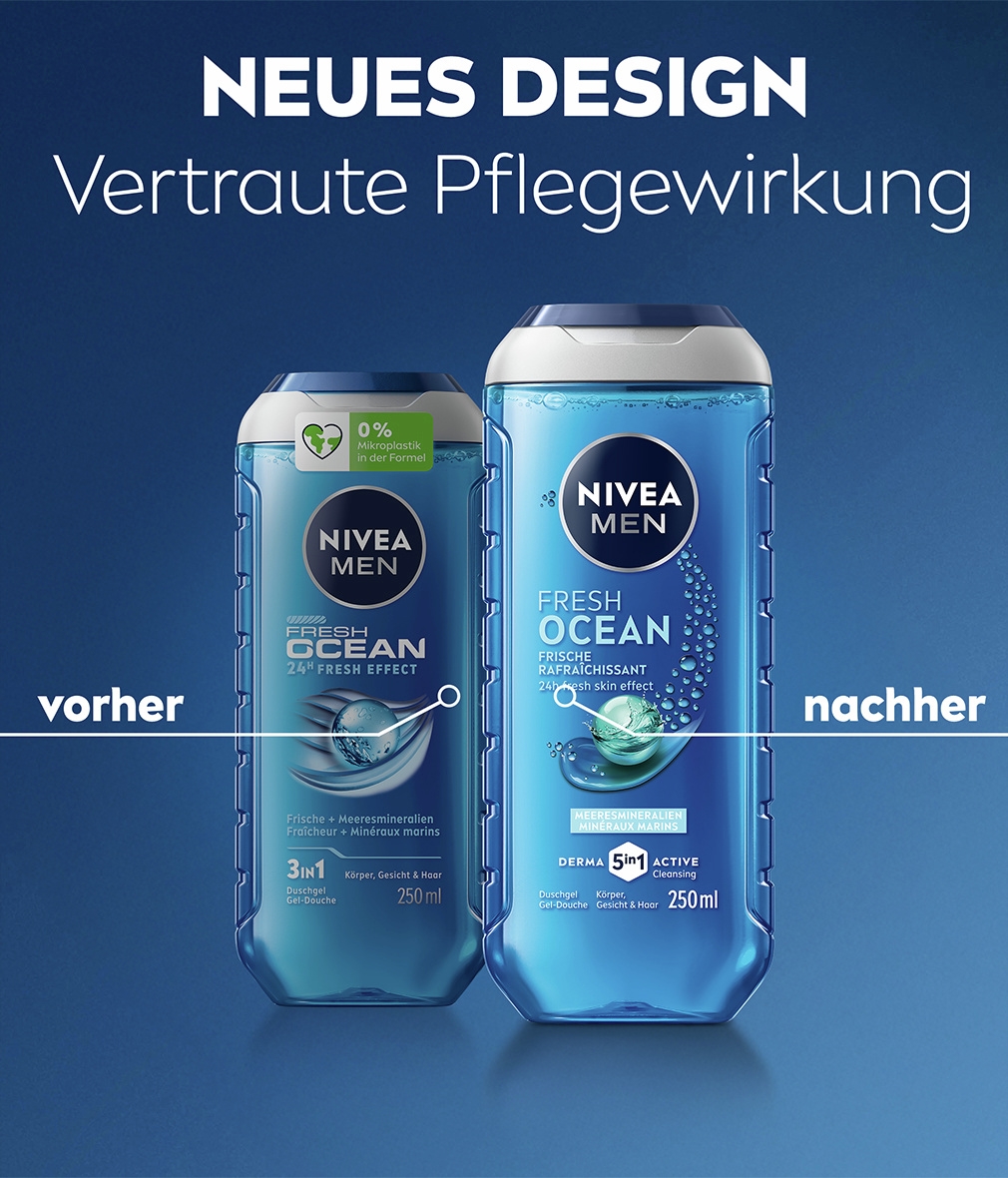 Bist du bereit für eine Frischewelle? Diese belebende Formel mit natürlichen Meeresmineralien sorgt für ein schwimmendes Duscherlebnis und hinterlässt einen lang anhaltenden, belebenden Duft. Die Haut fühlt sich gepflegt und kräftig an und sieht gesund aus. Jede Anwendung reinigt sanft, entfernt Schmutz und Schweiß und spendet gleichzeitig intensive Feuchtigkeit. Dein Hautgefühl wird spürbar verbessert: stark, gepflegt und voller Energie. Der angenehme Duft bleibt lange erhalten und macht die Dusche zu einem Moment purer Erfrischung. Ideal für den täglichen Gebrauch, um Körper und Geist zu beleben und deiner Haut die Pflege zu geben, die sie verdient. NIVEA ist in über 160 Ländern vertreten und mit mehr als 140 Jahren Erfahrung eine der weltweit größten und vertrauenswürdigsten Hautpflegemarken. Als Marktführer in der globalen Hautpflegeindustrie arbeiten unsere Forscher intensiv daran, hochwertige, dermatologisch getestete Produkte für verschiedene Hauttypen und -bedürfnisse anzubieten.