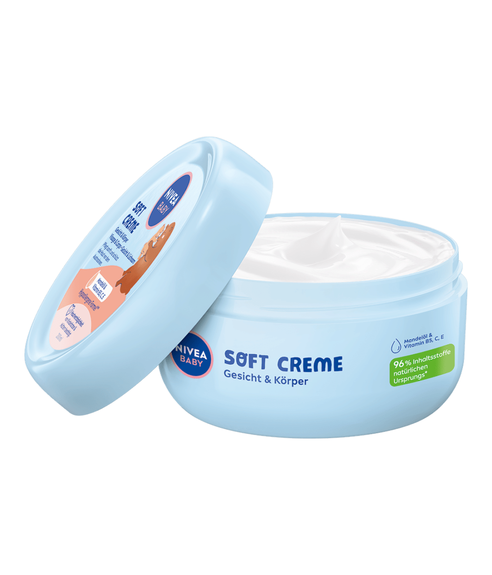 Die Soft Creme Gesicht & Körper zieht schnell ein und pflegt die zarte Babyhaut mit langanhaltender Feuchtigkeit. Hautpflege mit jeder Berührung.