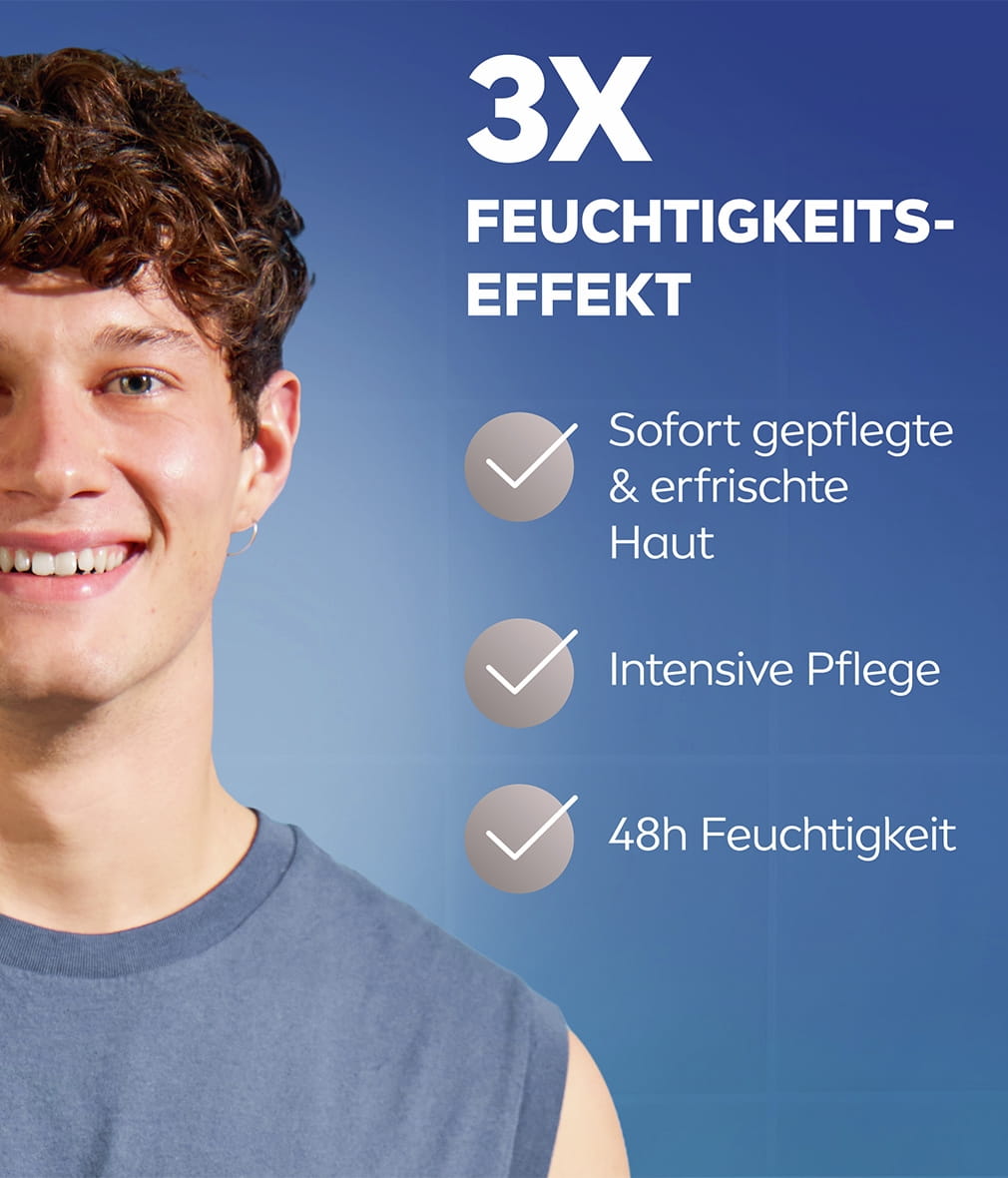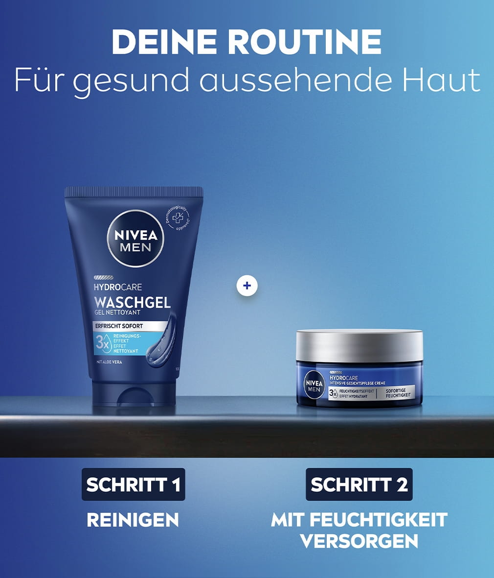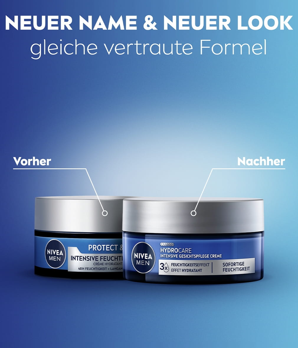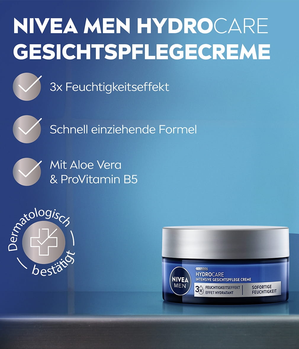 Die NIVEA MEN HydroCare Intensive Feuchtigkeitscreme pflegt die Haut und sorgt für einen 3x Feuchtigkeitseffekt. Die Formel zieht schnell ein, fettet nicht und revitalisiert deine Haut.