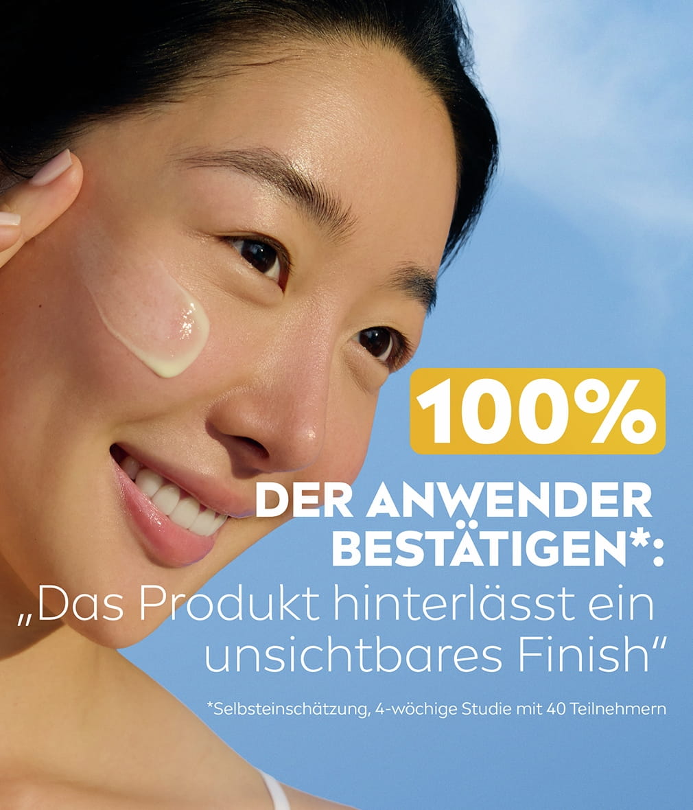 - TÄGLICHER SONNENSCHUTZ FÜR JEDEN HAUTTYP – Zieht schnell ein, ohne weiße Rückstände zu hinterlassen. Geeignet zum Auftragen unter Make-up. Hautverträglichkeit dermatologisch bestätigt.