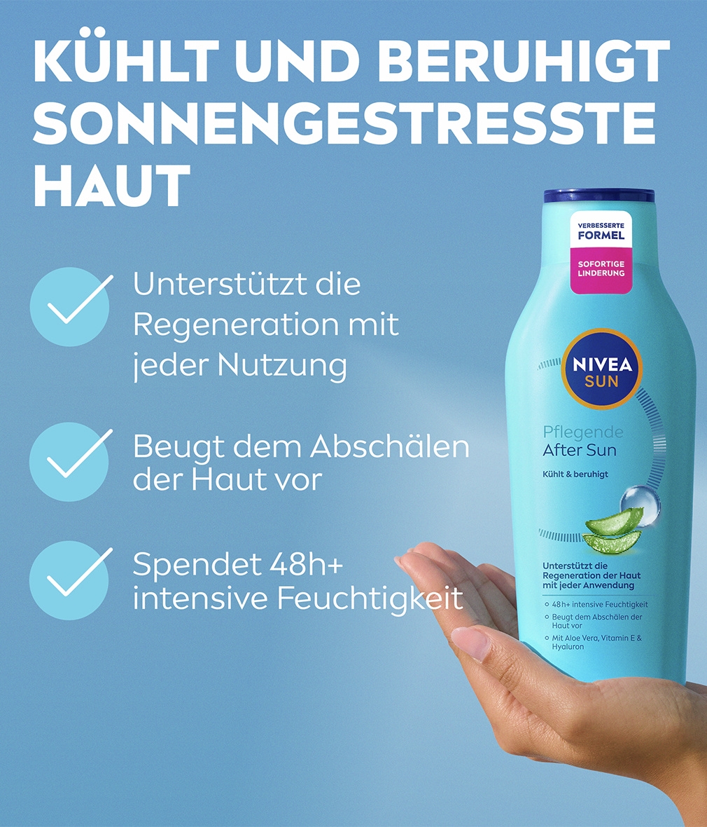 - Speziell entwickelt für sonnenbeanspruchte Haut – Besonders hautverträgliche Formel mit Bio-Aloe Vera, Vitamin E und Hyaluron – abgestimmt auf die Bedürfnisse sonnengestresster Haut