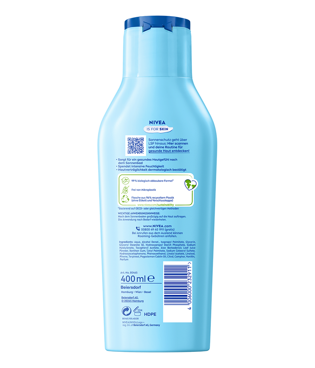 - Hautregeneration – Unterstützt wirksam die Regeneration der sonnenbeanspruchten Haut bei jeder Anwendung