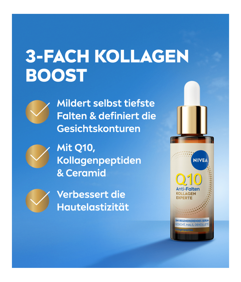 Q10 Anti-Falten Kollagen Expert 3in1 Regeneriendes Serum, Mildert tiefe Falten, strafft Konturen, festigt die Haut