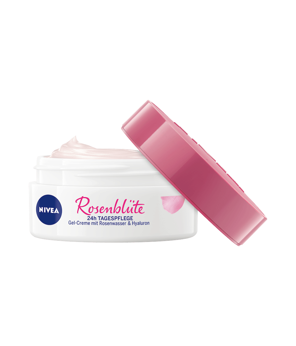 Die NIVEA Rosenblüte Gel-Creme Tagespflege mit Rosenwasser natürlichen Ursprungs und Hyaluron versorgt die Haut intensiv mit Feuchtigkeit und sorgt gleichzeitig für einen strahlenden Teint.
