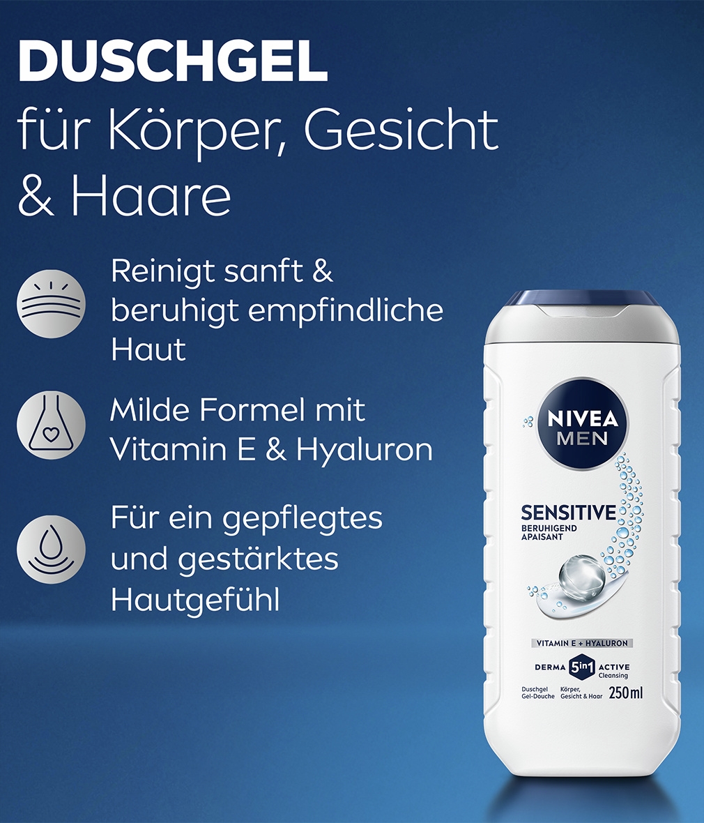 Du hast empfindliche Haut? Dann ist diese milde und pflegende Formel mit Vitamin E und Hyaluron genau das Richtige für dich. Sie reinigt sanft, ohne die Haut zu reizen, und sorgt gleichzeitig für eine intensive Pflege. Vitamin E schützt die Haut vor freien Radikalen, während Hyaluron für eine langanhaltende Feuchtigkeitsversorgung sorgt. Nach jeder Anwendung fühlt sich deine Haut beruhigt, gepflegt und angenehm weich an, was den ganzen Tag anhält. Ideal für die tägliche Anwendung, um empfindliche Haut optimal zu schützen und ihr ein gesundes, frisches Aussehen zu verleihen. NIVEA ist in über 160 Ländern vertreten und mit mehr als 140 Jahren Erfahrung eine der weltweit größten und vertrauenswürdigsten Hautpflegemarken. Als Marktführer in der globalen Hautpflegeindustrie arbeiten unsere Forscher intensiv daran, hochwertige, dermatologisch getestete Produkte für verschiedene Hauttypen und -bedürfnisse anzubieten.
