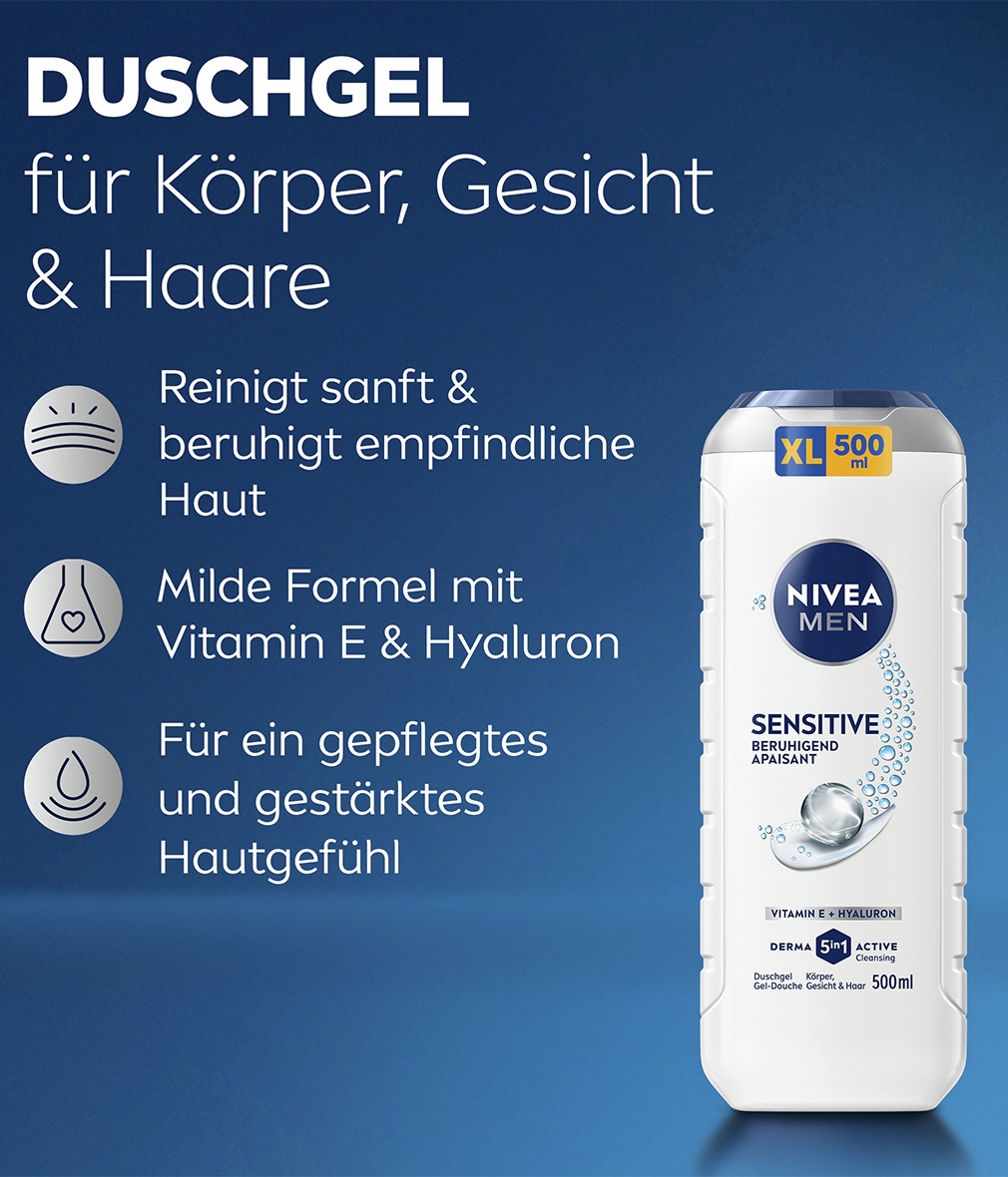 Hast du empfindliche Haut? Dann ist diese milde und pflegende Formel mit Vitamin E und Hyaluron genau das Richtige für dich. Sie reinigt sanft, ohne die Haut zu reizen, und sorgt gleichzeitig für eine intensive Pflege. Vitamin E schützt die Haut vor freien Radikalen, während Hyaluron für eine langanhaltende Feuchtigkeitsversorgung sorgt. Nach jeder Anwendung fühlt sich deine Haut beruhigt, gepflegt und angenehm weich an. Ideal für die tägliche Anwendung, um empfindliche Haut optimal zu schützen und ihr ein gesundes, frisches Aussehen zu verleihen. NIVEA ist in über 160 Ländern vertreten und mit mehr als 140 Jahren Erfahrung eine der weltweit größten und vertrauenswürdigsten Hautpflegemarken. Als Marktführer in der globalen Hautpflegeindustrie arbeiten unsere Forscher intensiv daran, hochwertige, dermatologisch getestete Produkte für verschiedene Hauttypen und -bedürfnisse anzubieten.