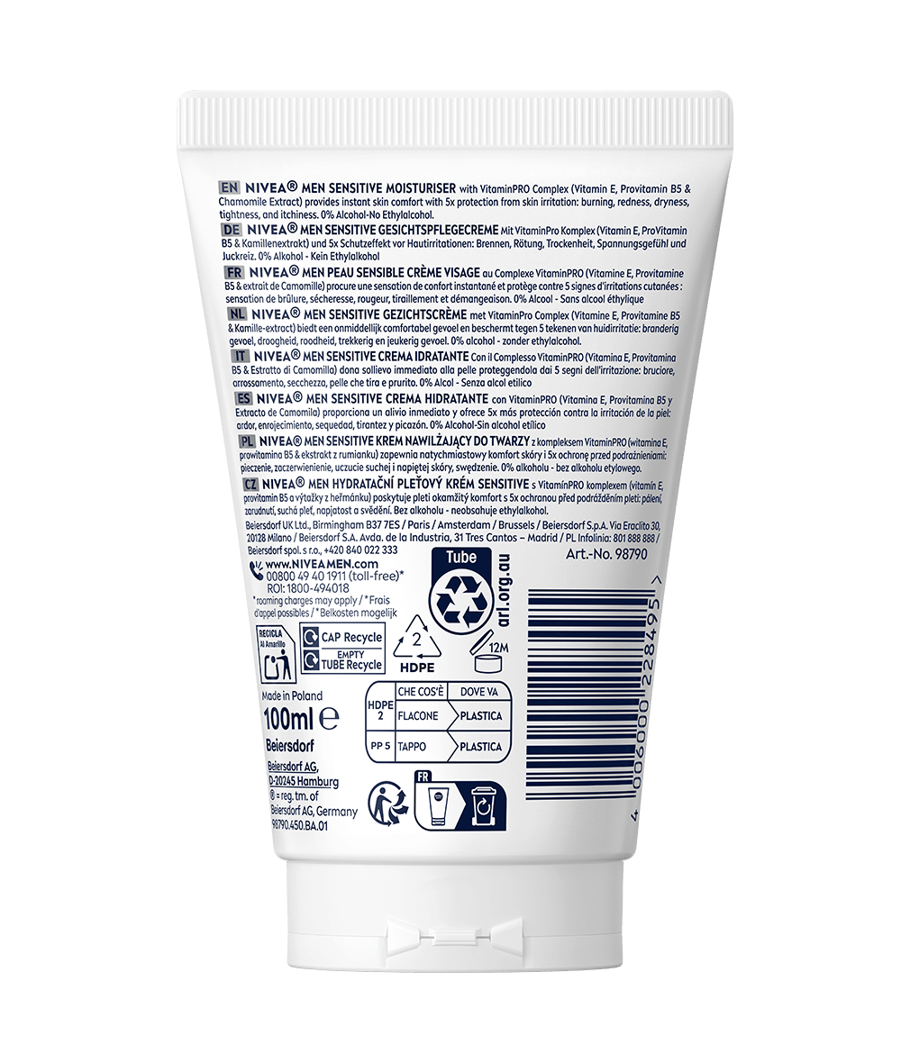 NIVEA MEN Sensitive Feuchtigkeitscreme XXL ohne Duftstoffe ist eine speziell formulierte Feuchtigkeitscreme, die langanhaltende Hautfeuchtigkeit für empfindliche Haut bietet. Sie beruhigt und nährt die Haut und sorgt für ein angenehmes und erfrischtes Gefühl im Laufe des Tages.