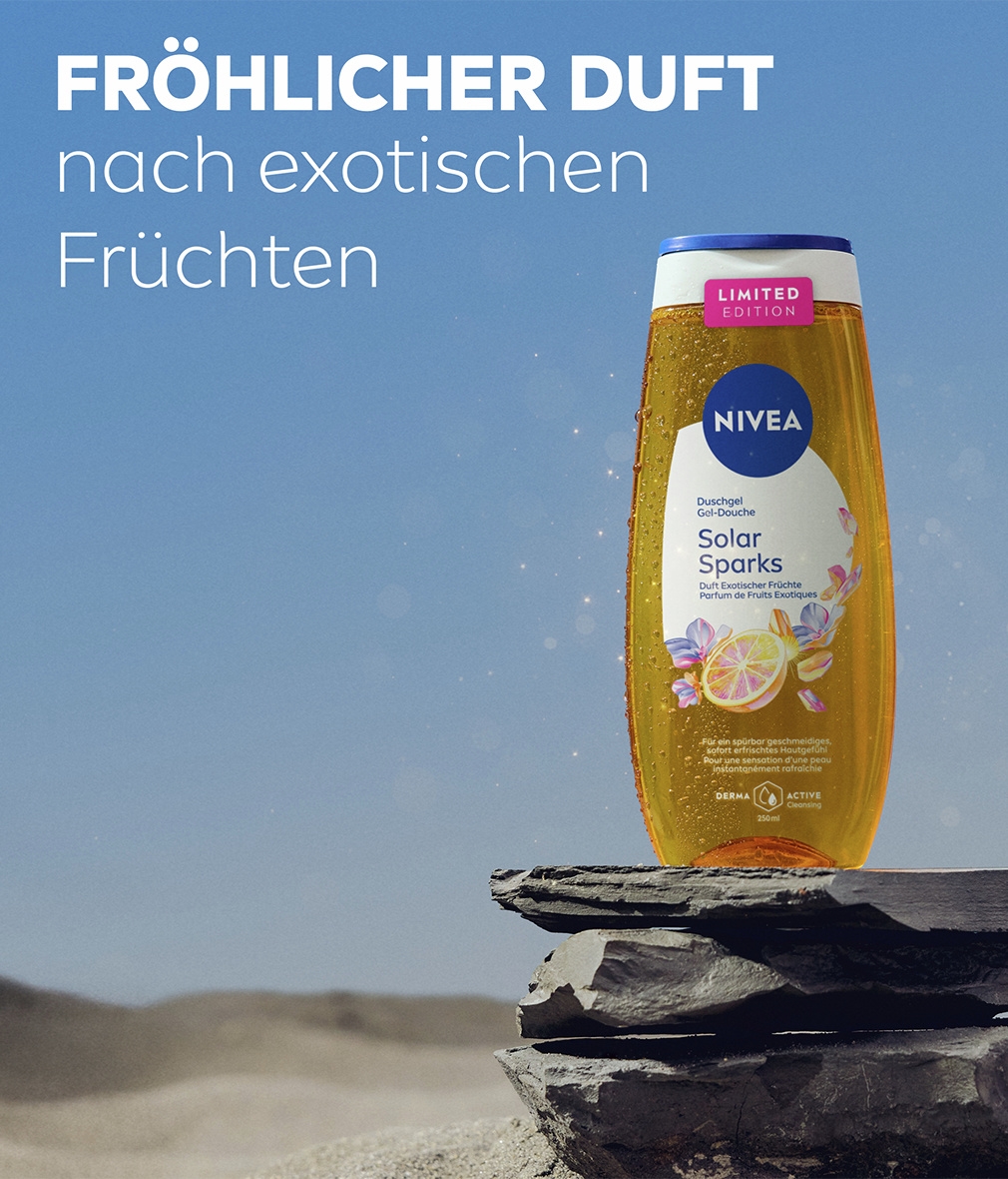 Begeben Sie sich auf eine faszinierende Duftreise und tauchen Sie ein in eine Duftkomposition aus exotischen Früchten mit NIVEA Solar Sparks.