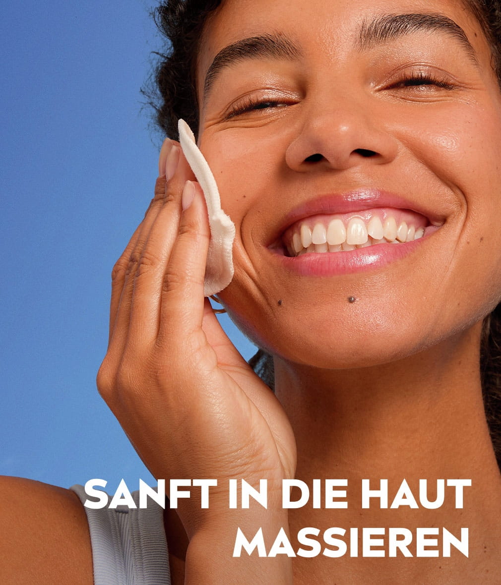 Mit einem Wattepad sanft in die Haut einmassieren, dabei die Augenpartie aussparen