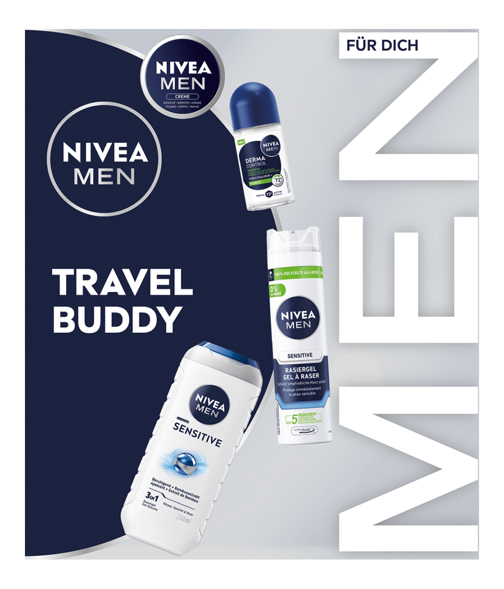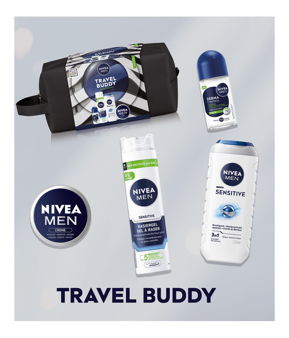 Mit dem NIVEA MEN Travel Buddy Set sind alle Pflege-Favoriten immer mit dabei